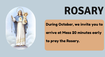 This month is dedicated to the Holy Rosary. During October, we invite you to arrive at Mass 20 minutes early to pray the Rosary. If a prayer leader is unavailable, we encourage silent meditation on the Rosary and its mysteries. During this time of prayer, please refrain from visiting with fellow parishioners when entering the Sanctuary.