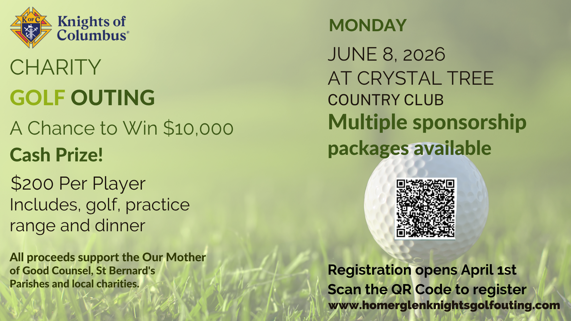 Join the Knights of Columus at their charity golf outing. You have a chance to win a $10,000 cash prize! The Knights are also welcoming sponsors for the event. Register here!