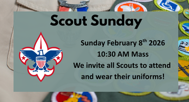 Sunday, February 8th, is Scout Sunday! We welcome all our fellow scouts and scouters to attend the 10:30am Mass for special recognition. We also invite you to wear your uniforms.
